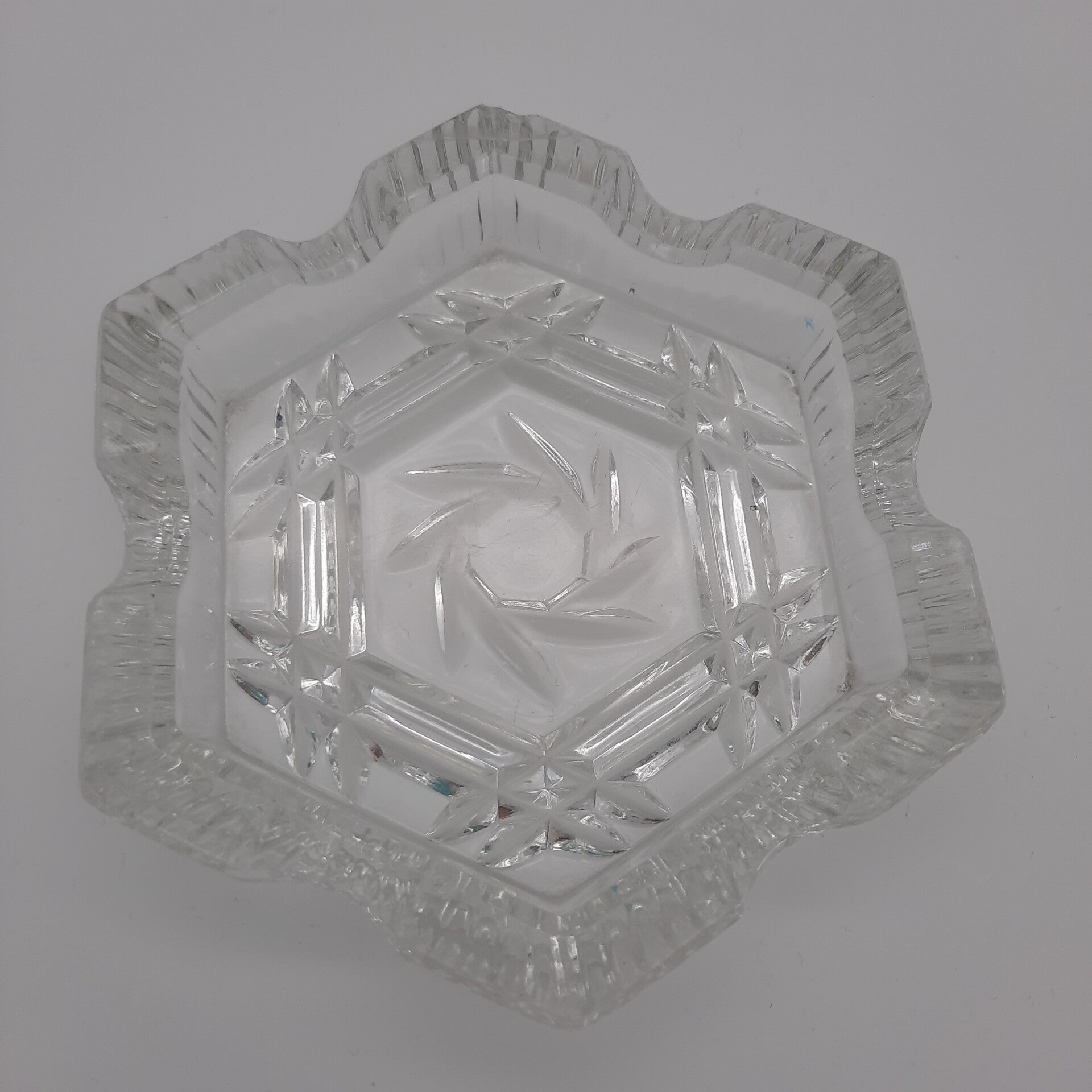 Vintage Ashtray Made of Glass in Hexagon Shape.