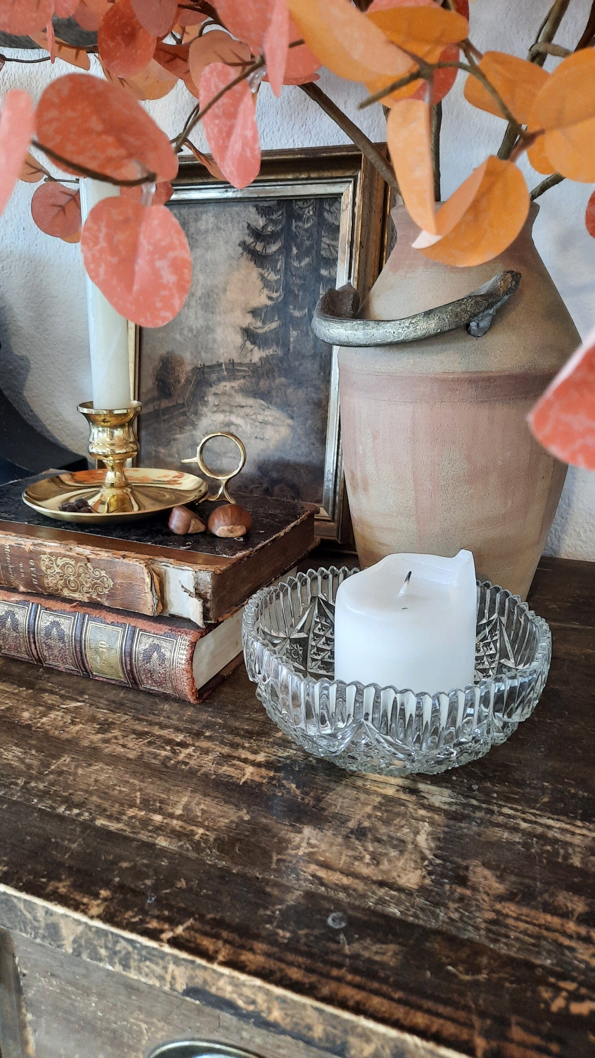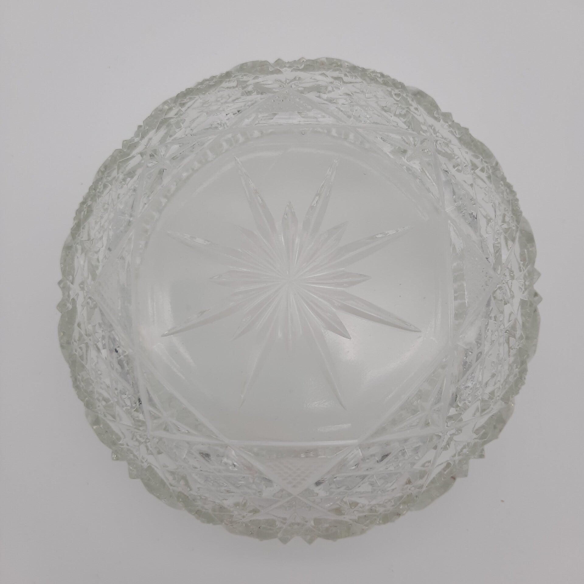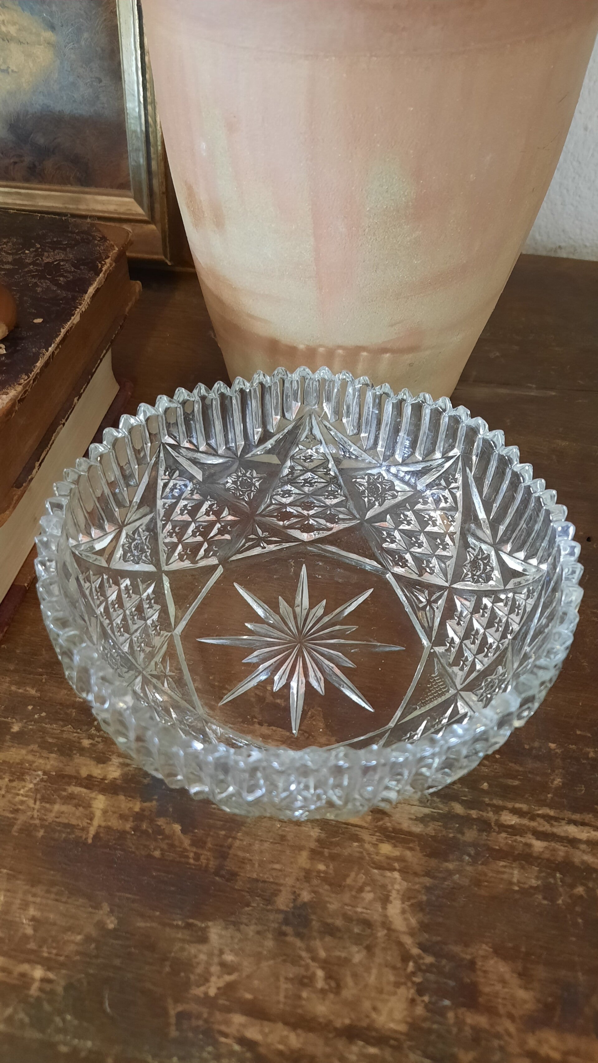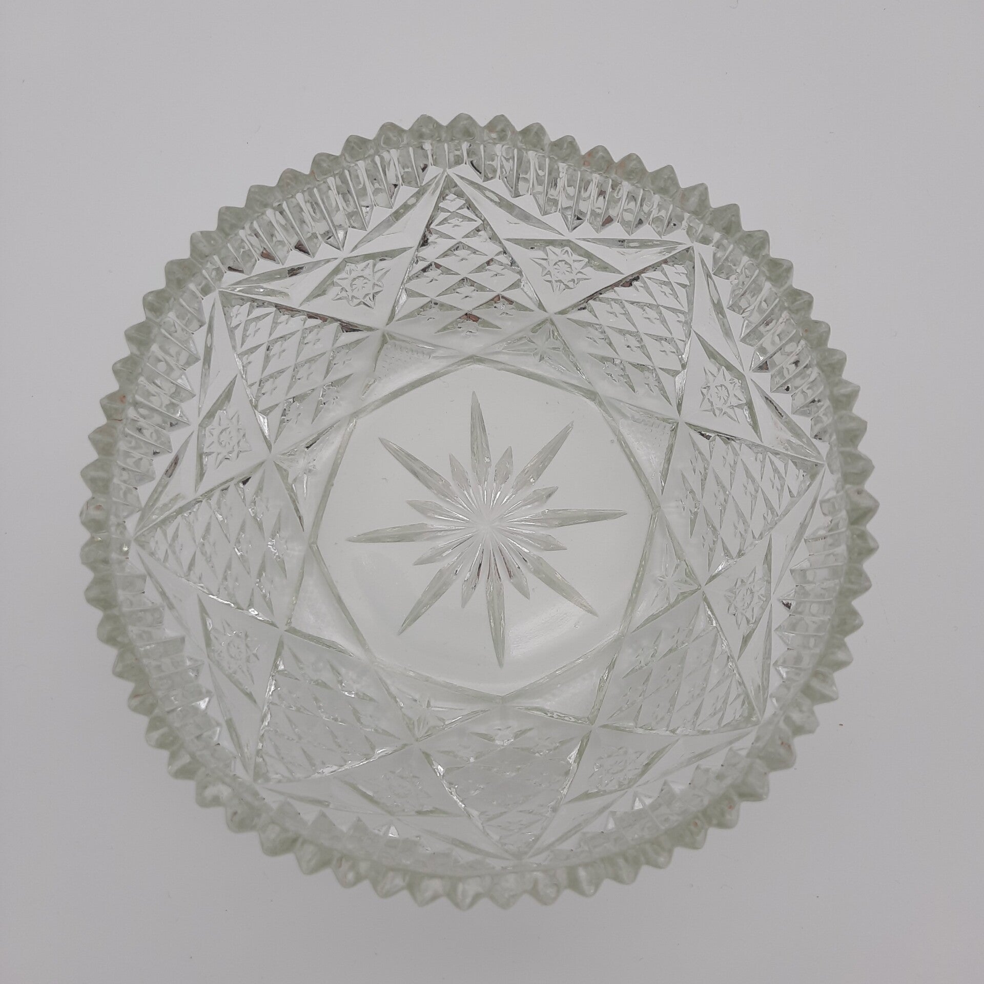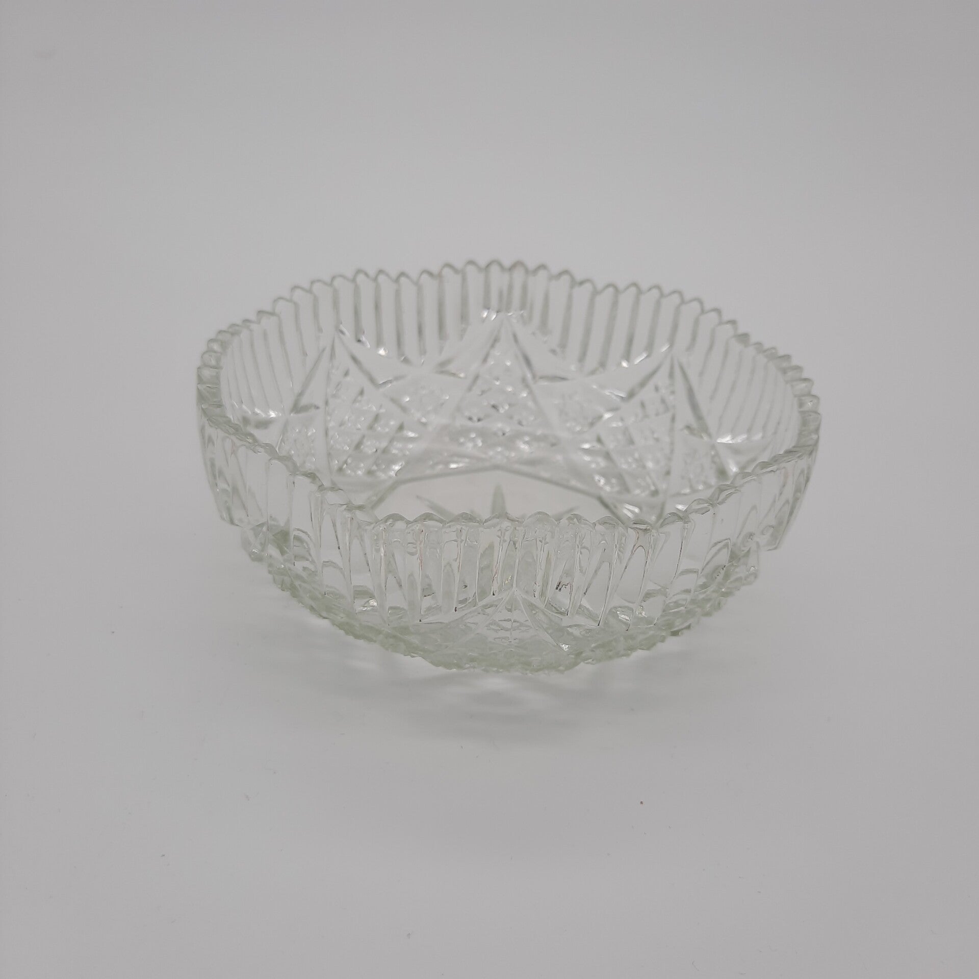 A Vintage Small Serving Bowl Made of Glass, with Jagged Edge Rim, Beautiful Design, and a Star on the Bottom.