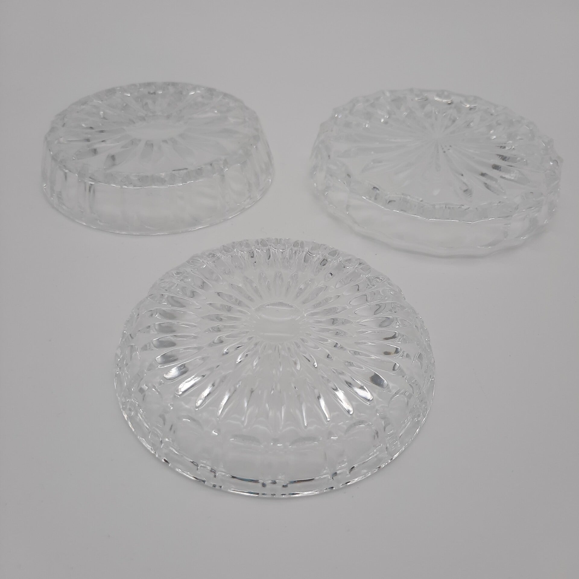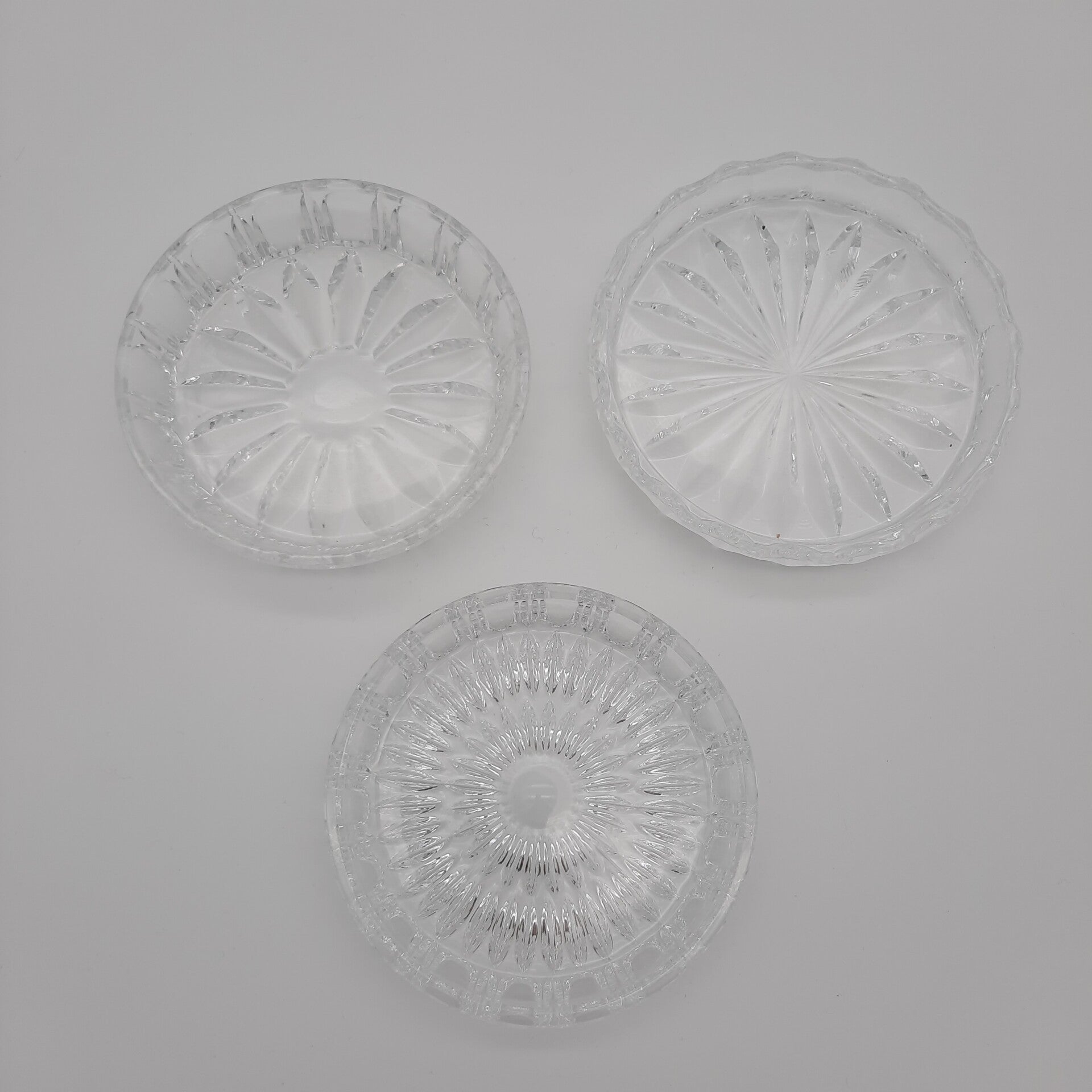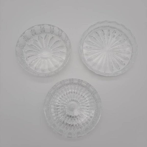 Set of 2 Crystal and 1 Glass Coasters / Dessert Bowls