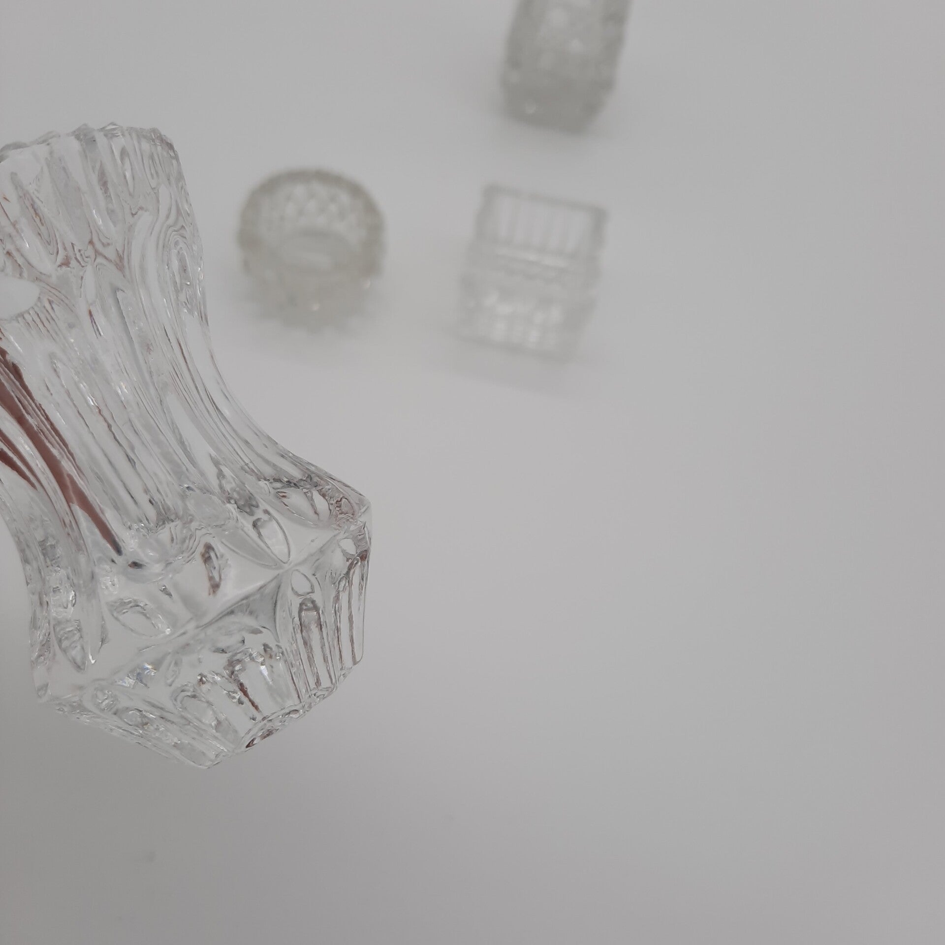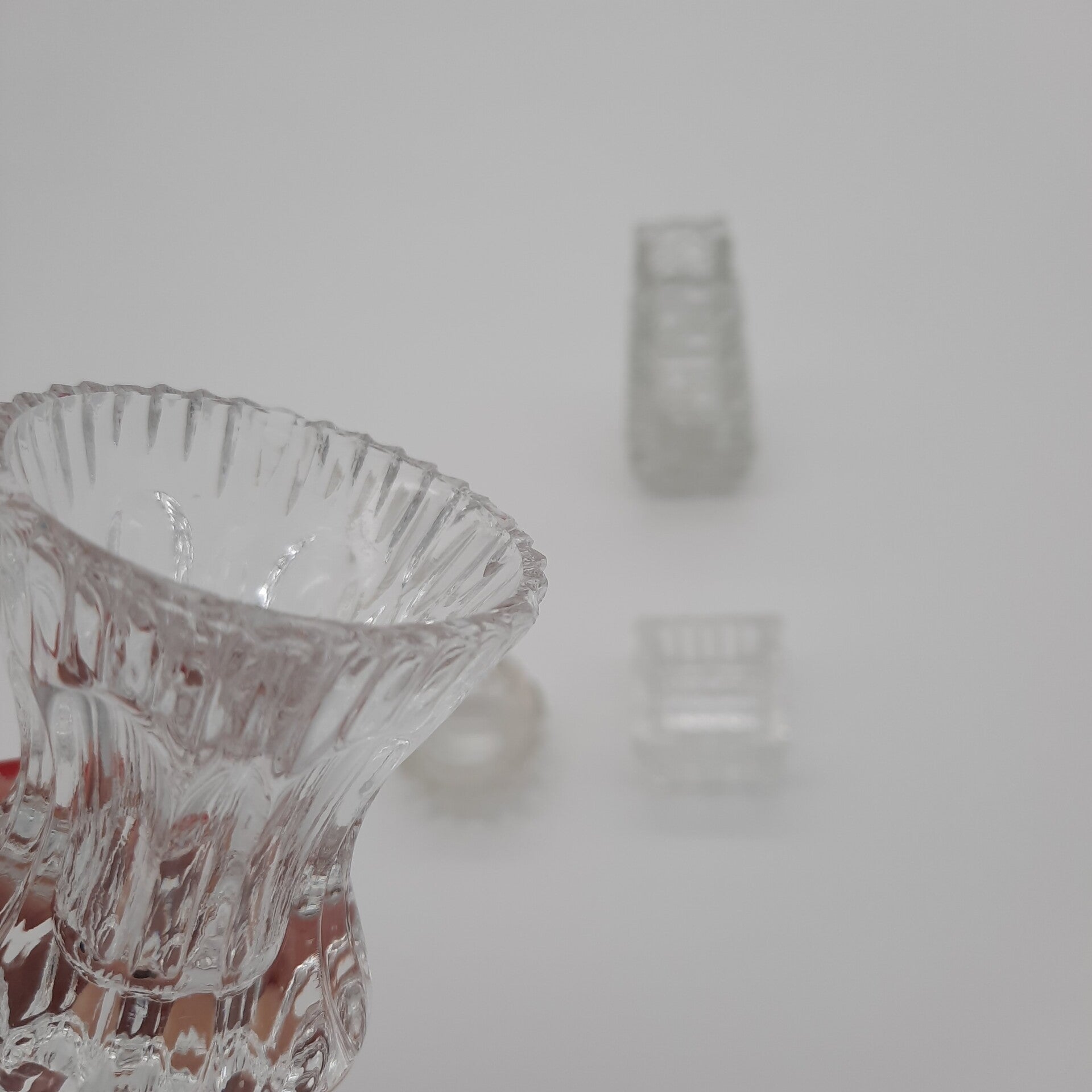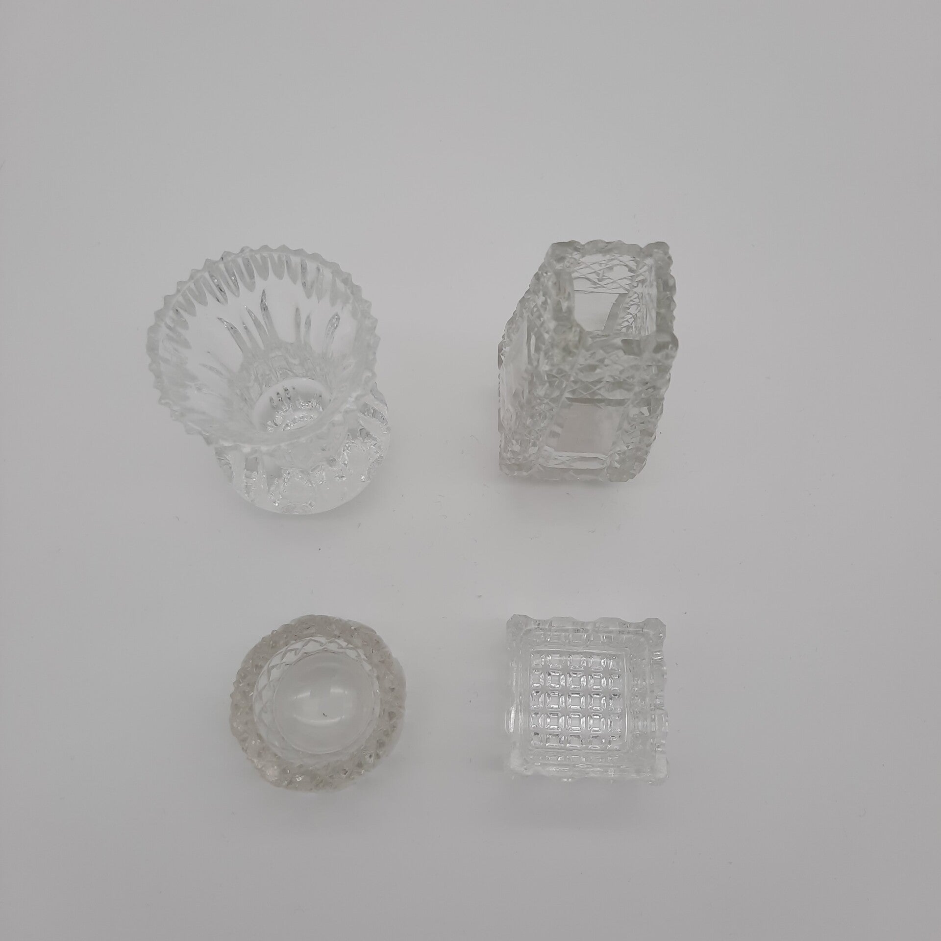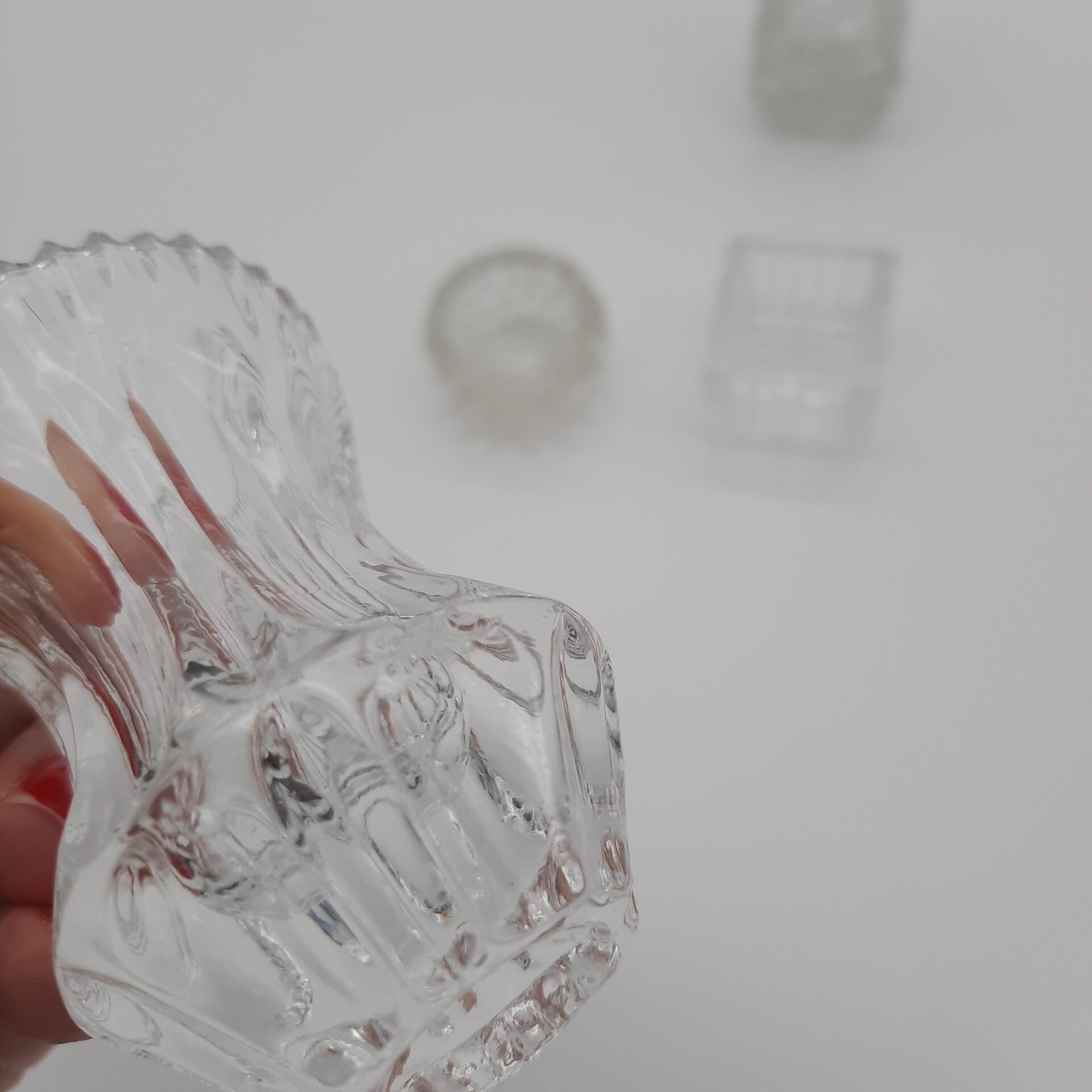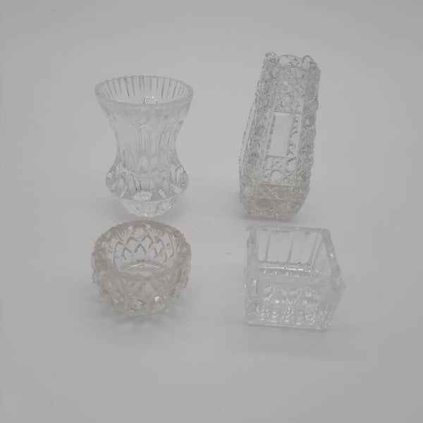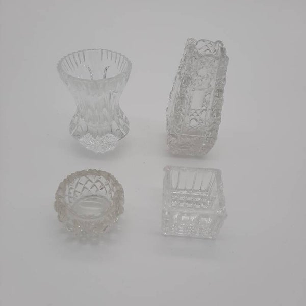 Set of 2 Vintage Crystal Salt Cellars, 1 Small Crystal Vase, and 1 Toothpick-Cocktail Stick Holder. A Beautiful Collection of Vintage Table Decoration.