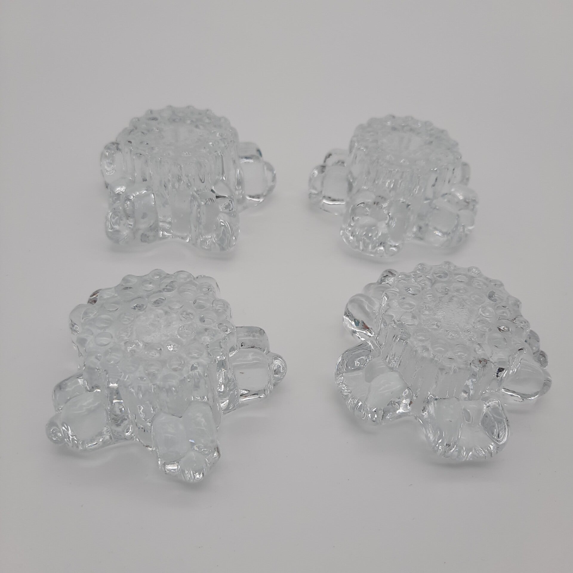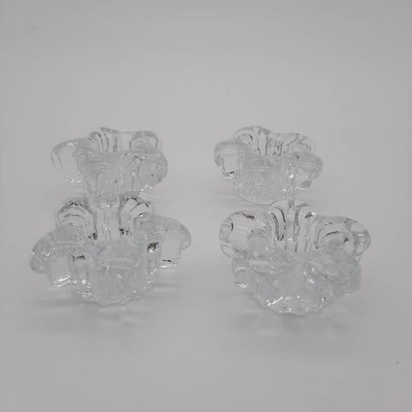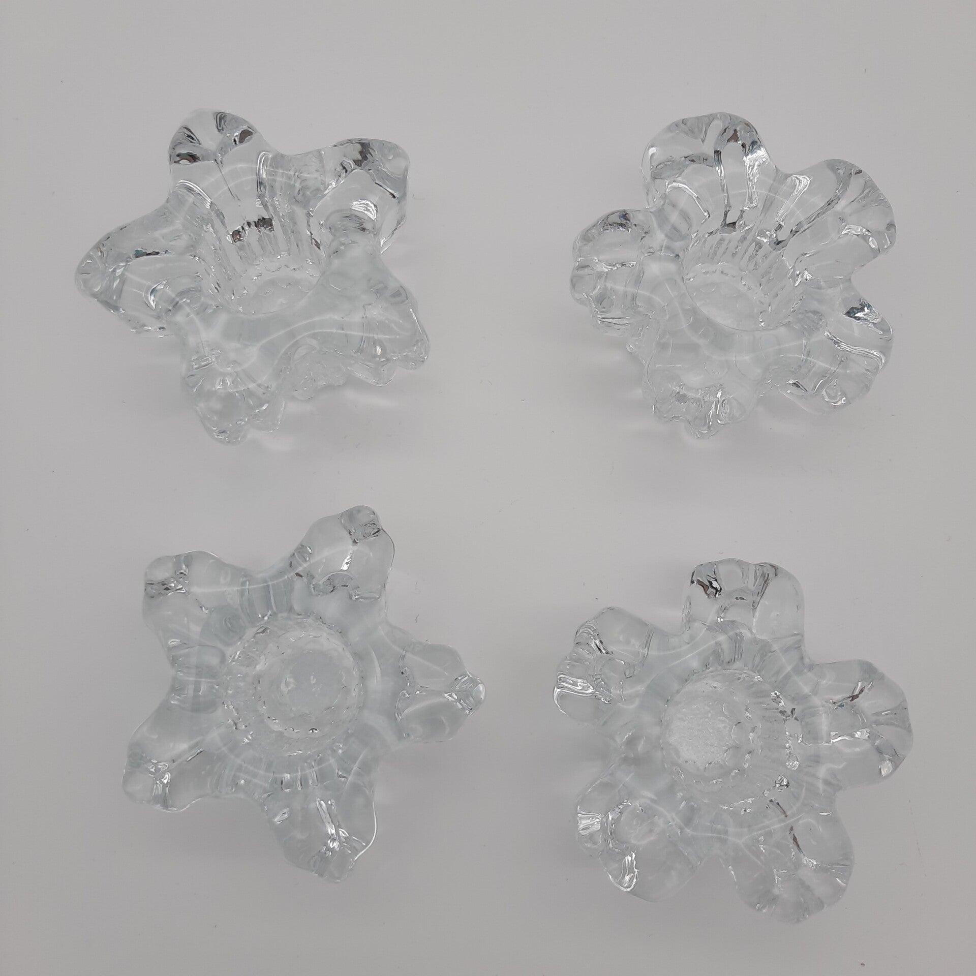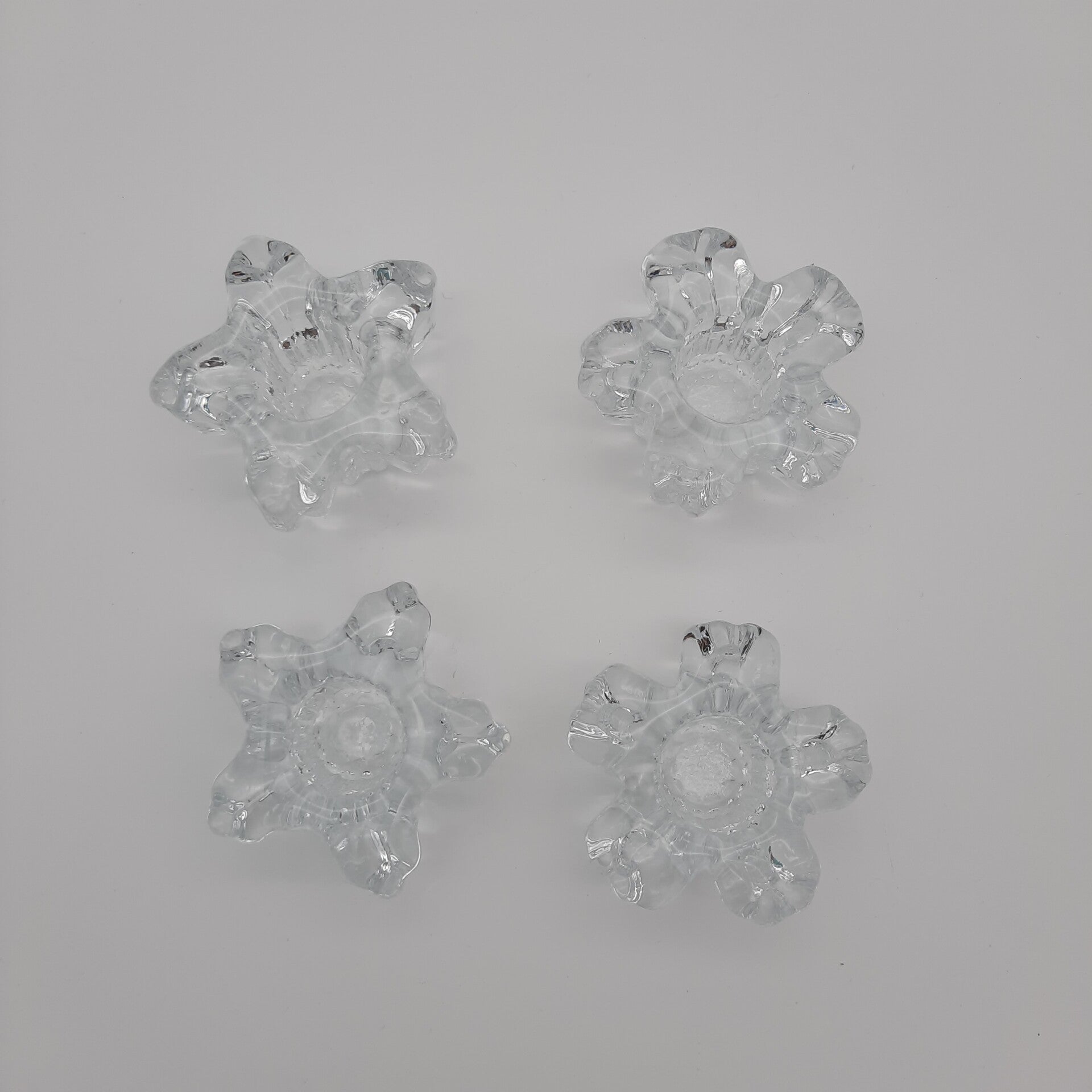 Set of 2 Pairs of Candle Holders Made of Crystal in Flower Design.