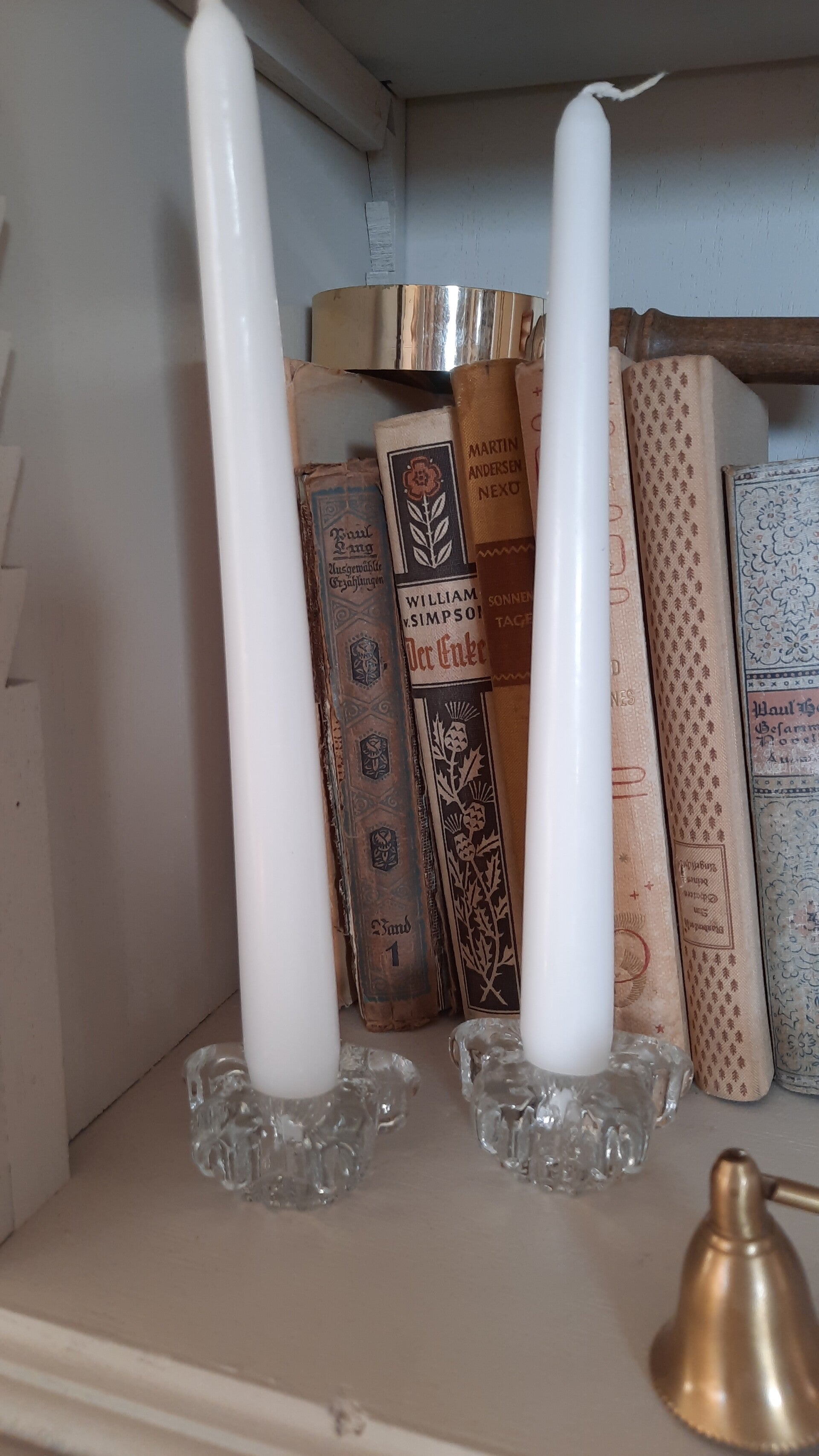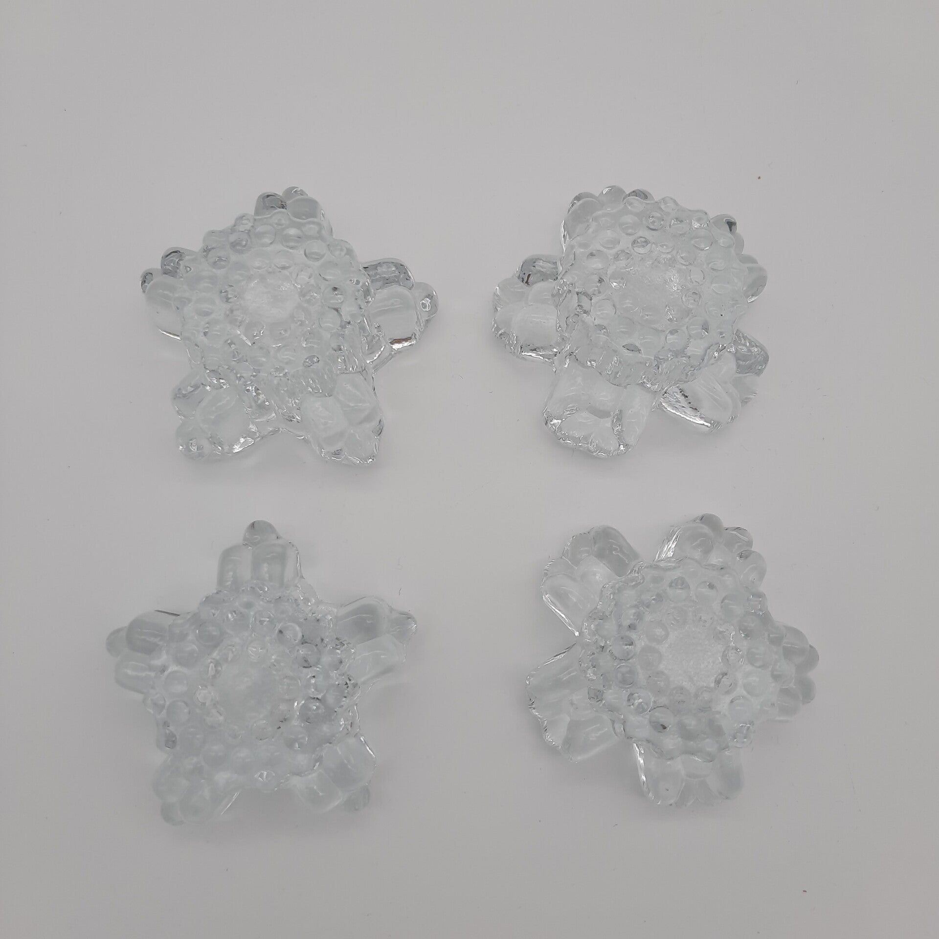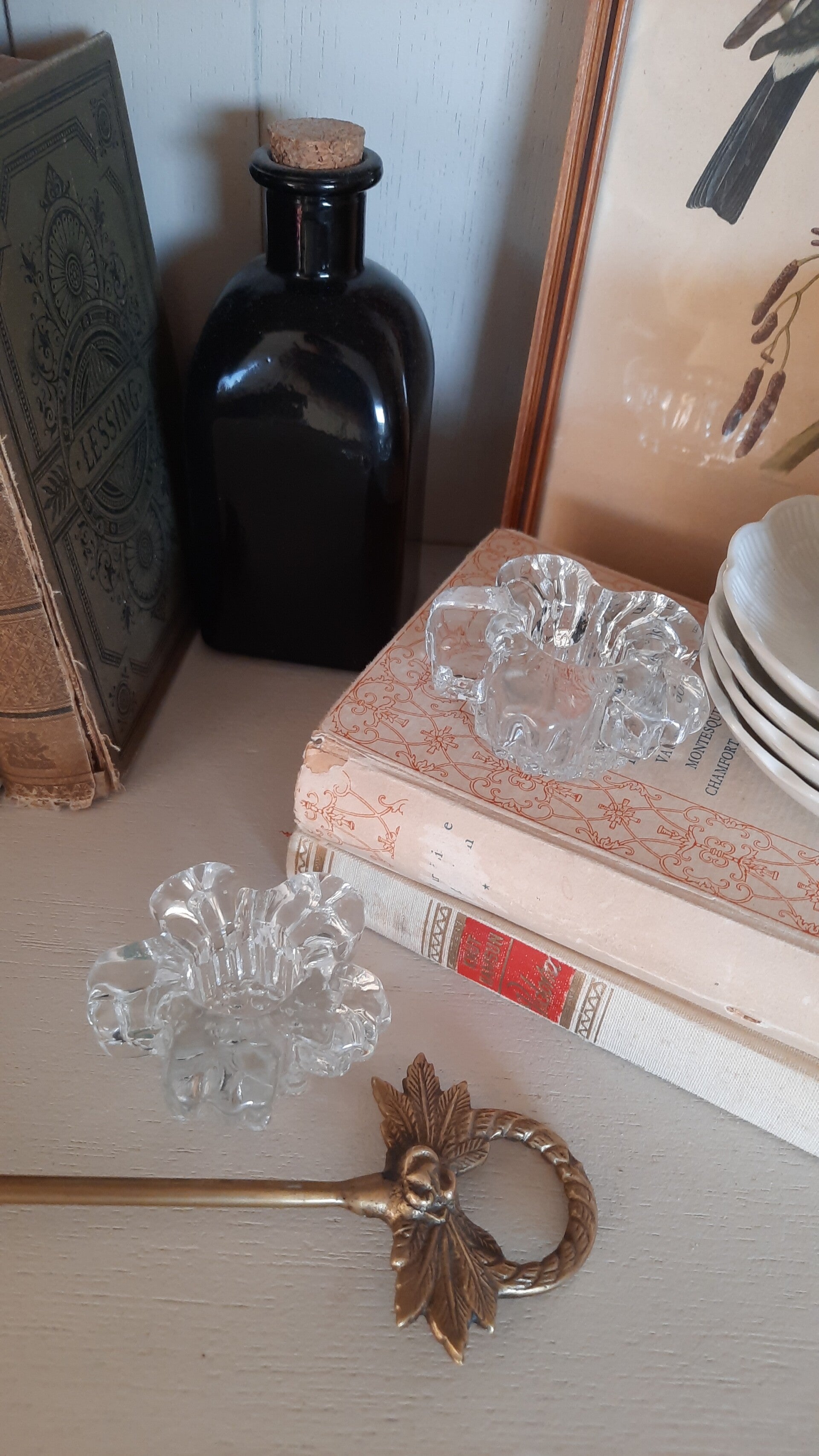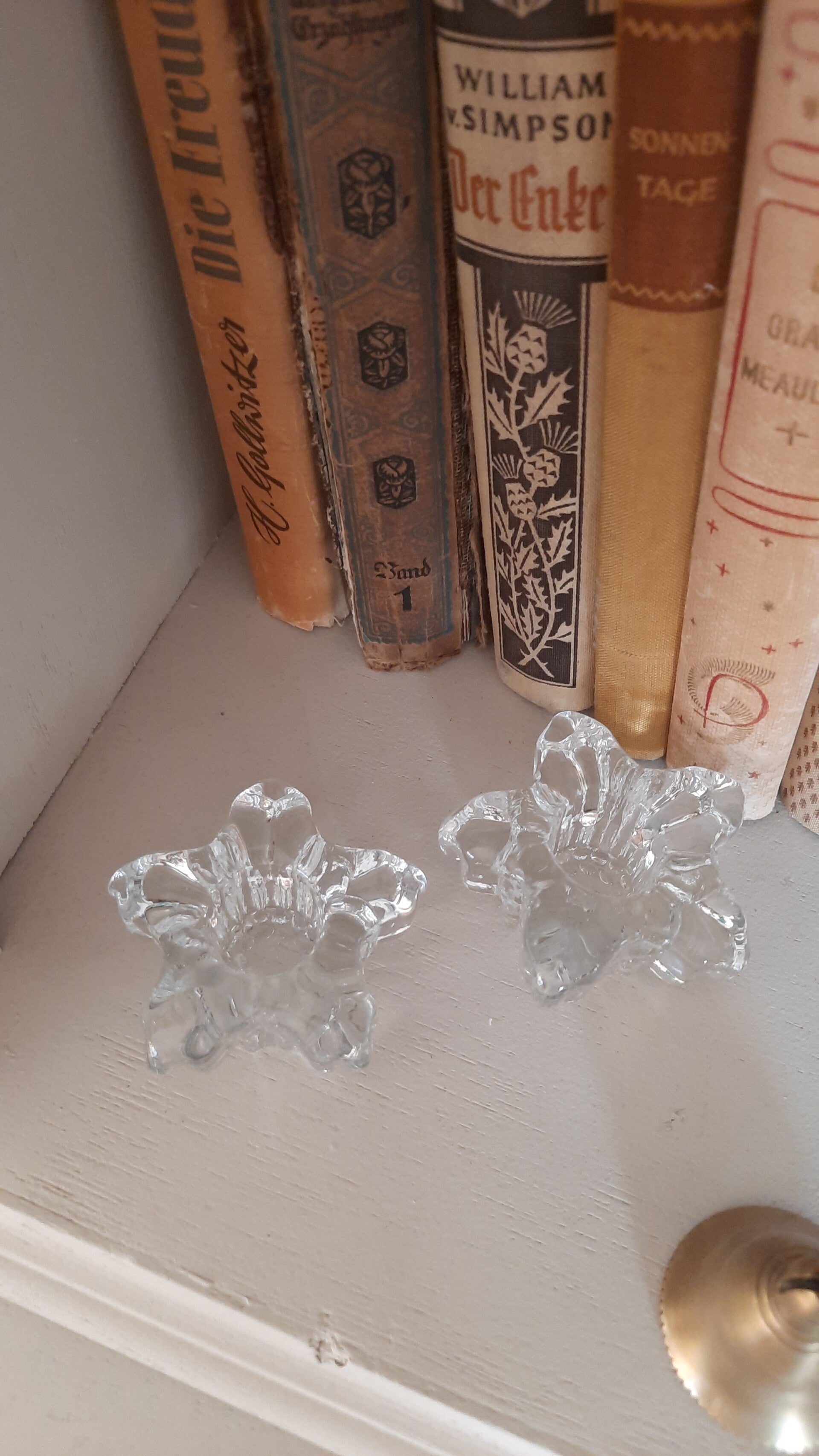 Set of 2 Pairs of Candle Holders Made of Crystal in Flower Design.