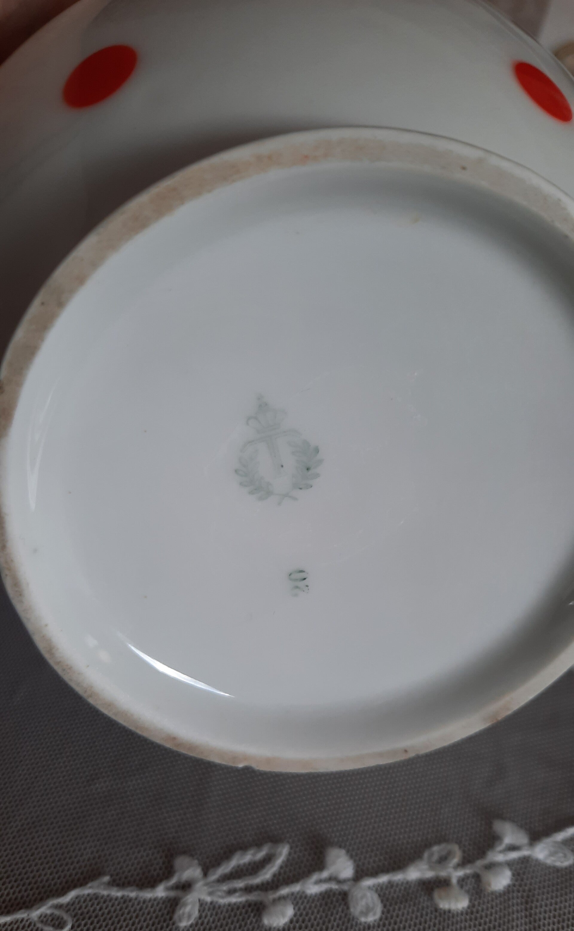In very good condition with no cracks or crazing. The creamer has a small chip on the rim, and there are a few tiny chips on the handle from the lid. These imperfections are minimal and do not detract from the overall appeal of the set.