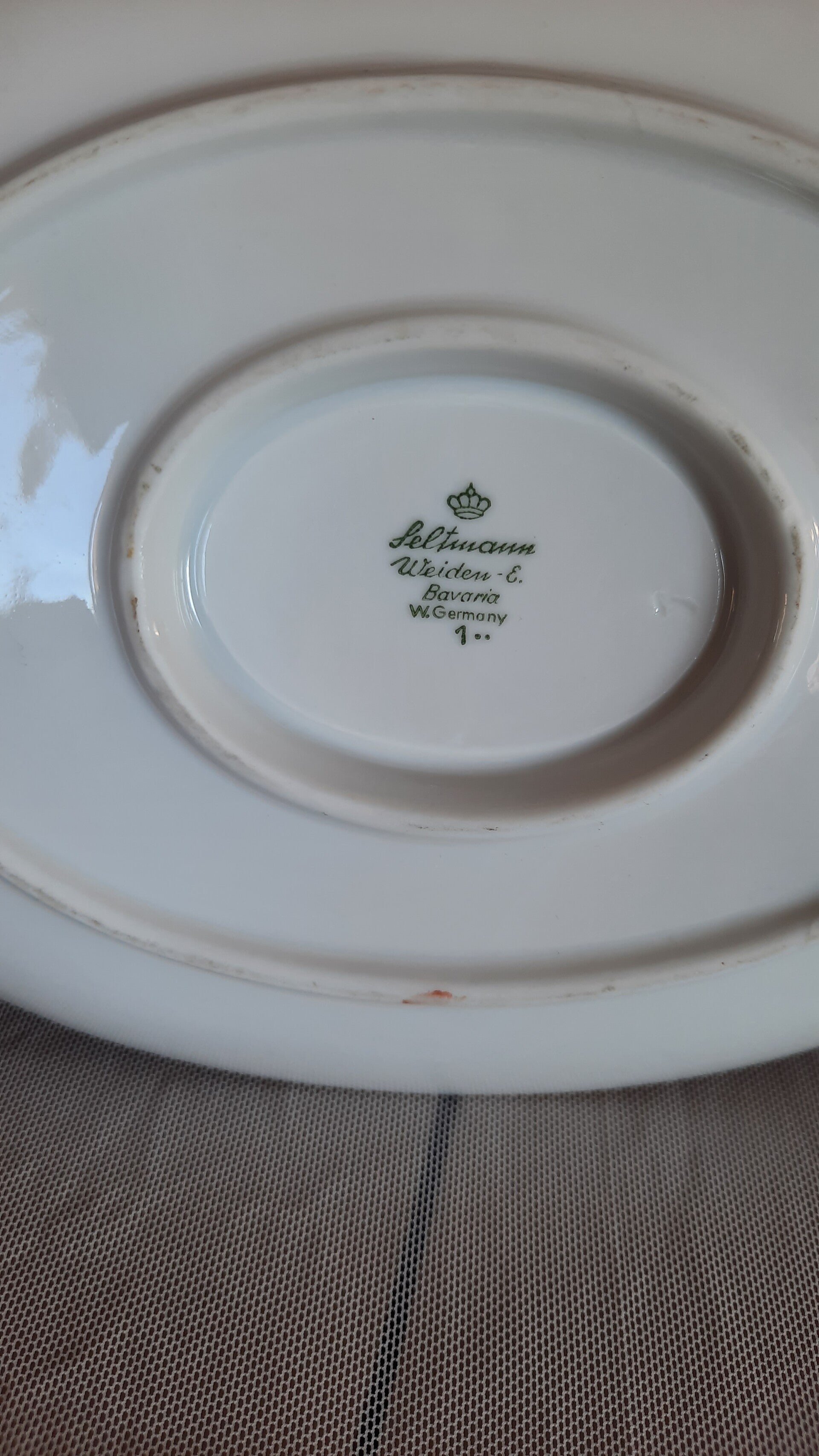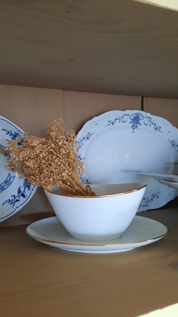 An elegant sauce boat in white with a gold rim. Made of porcelain. Marked on the bottom: Seltmann Weiden Bavaria Germany.
