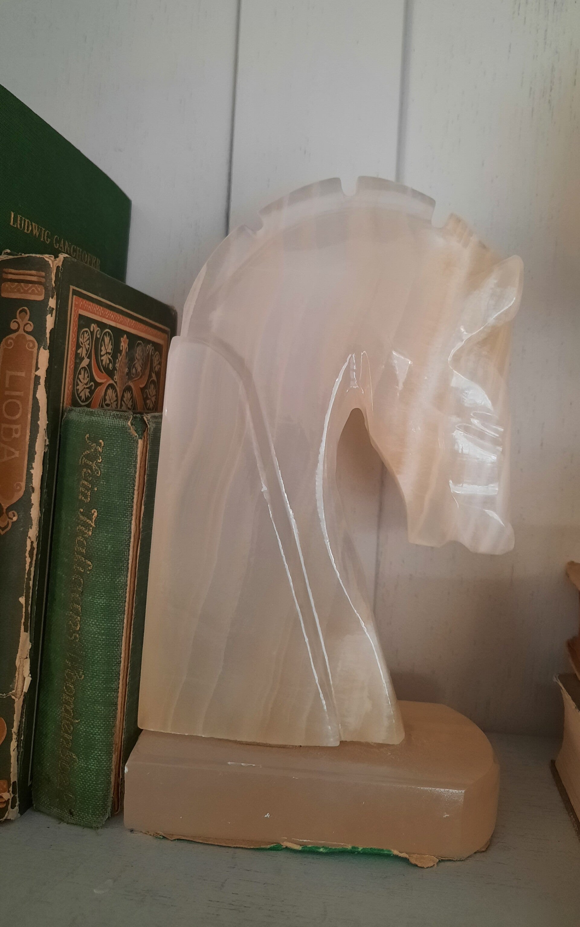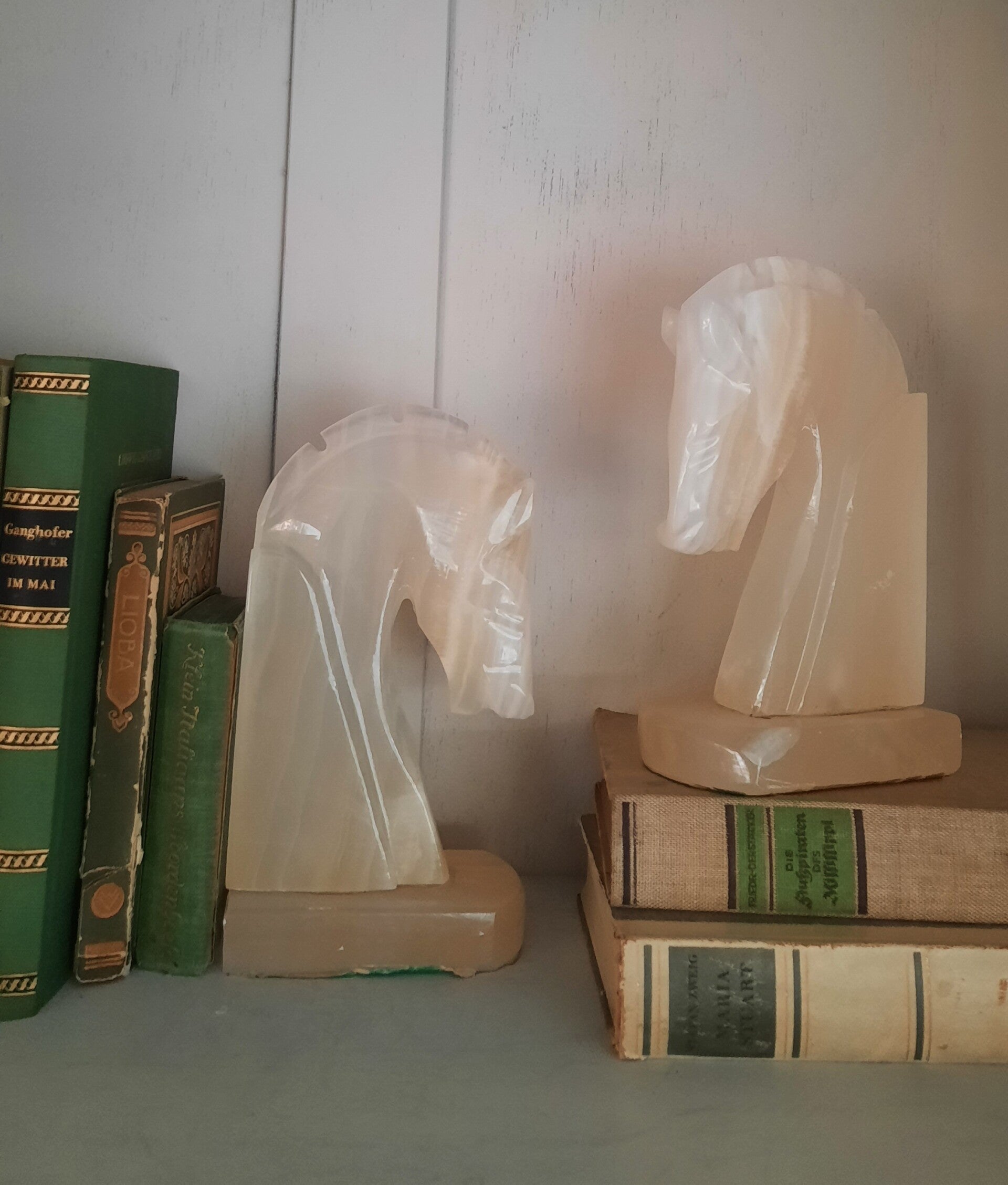 Vintage Pair of Horse Head Bookends Made of Onyx