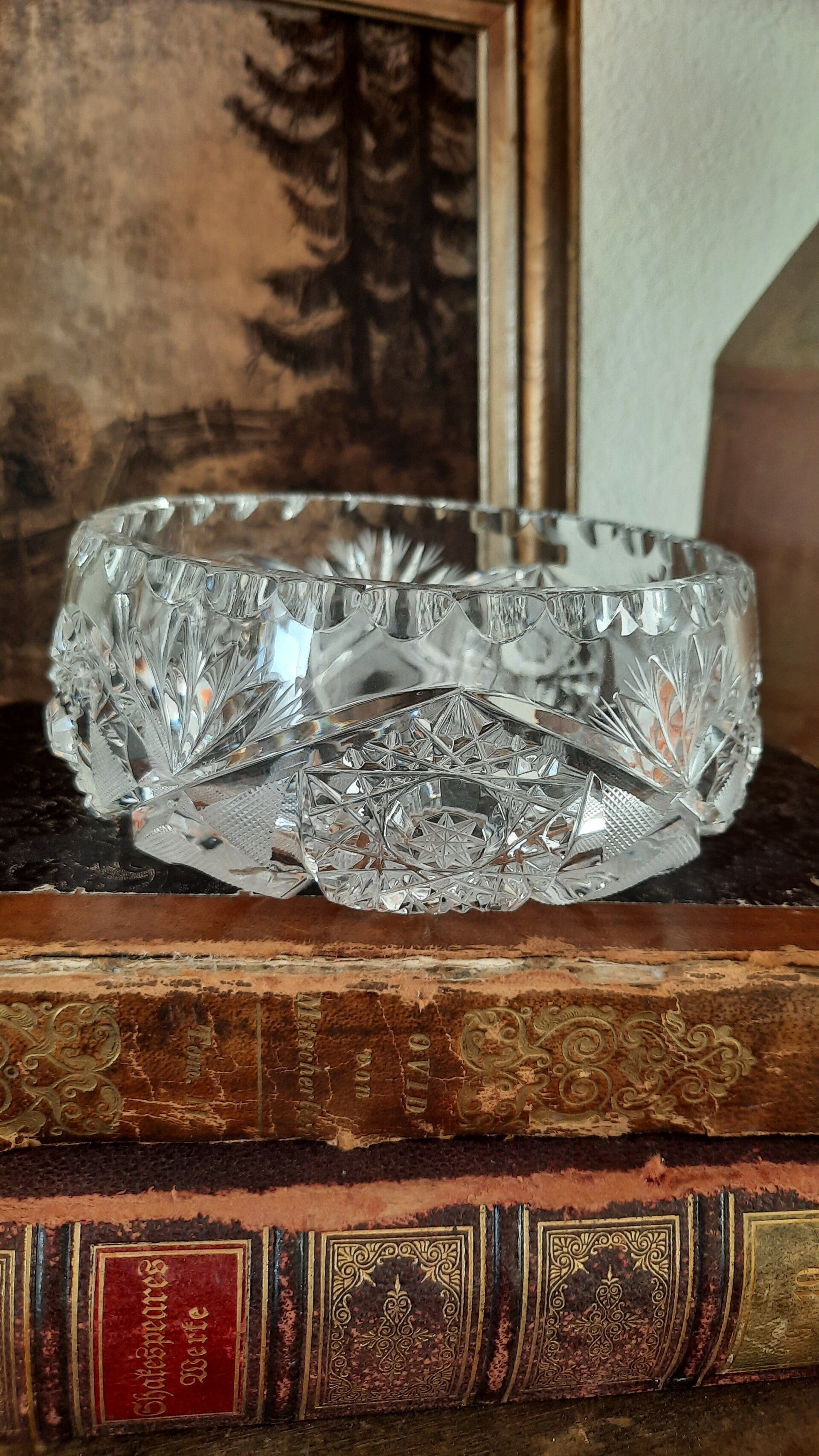 A vintage small bowl with engraved David Stars and a diamond pattern.