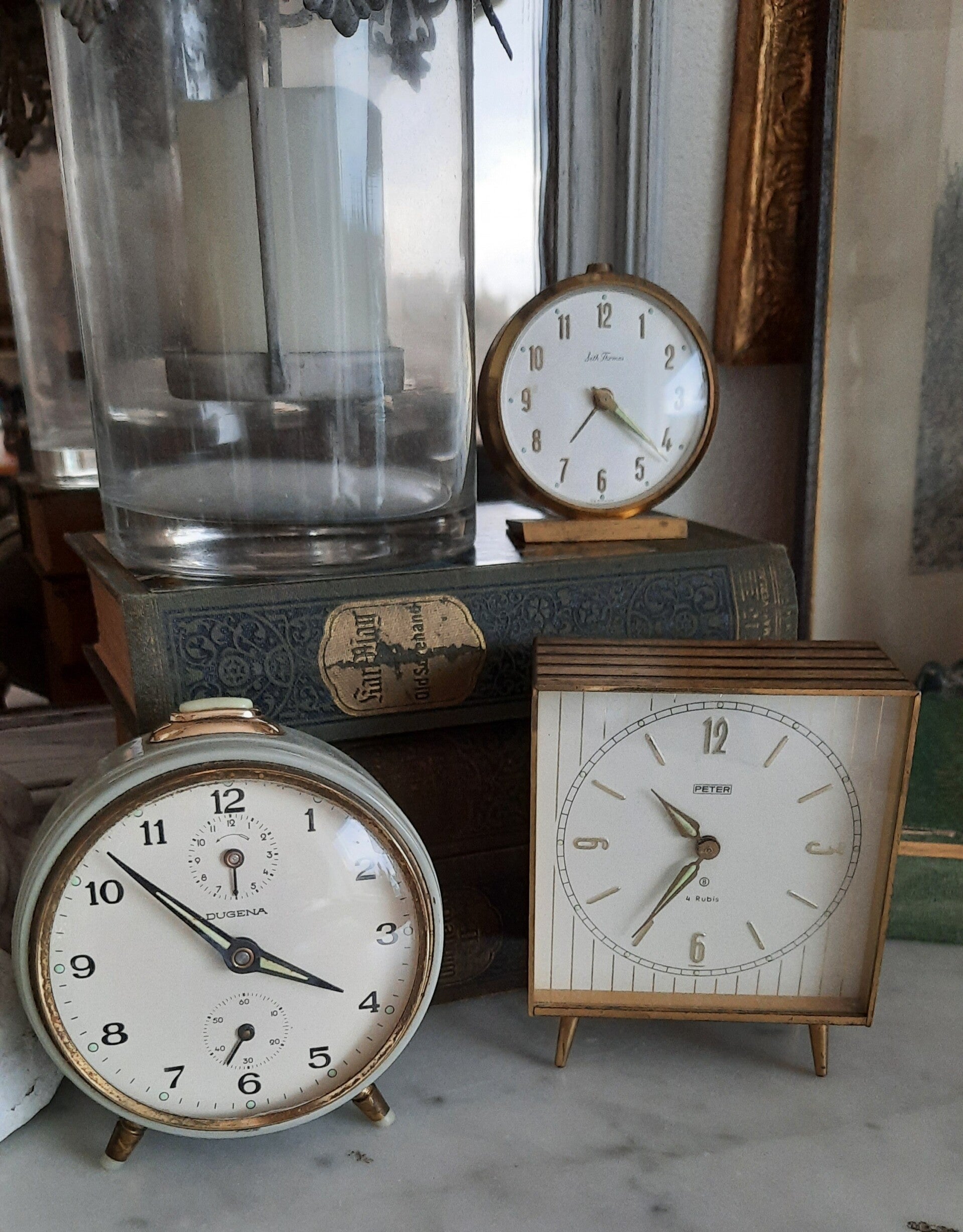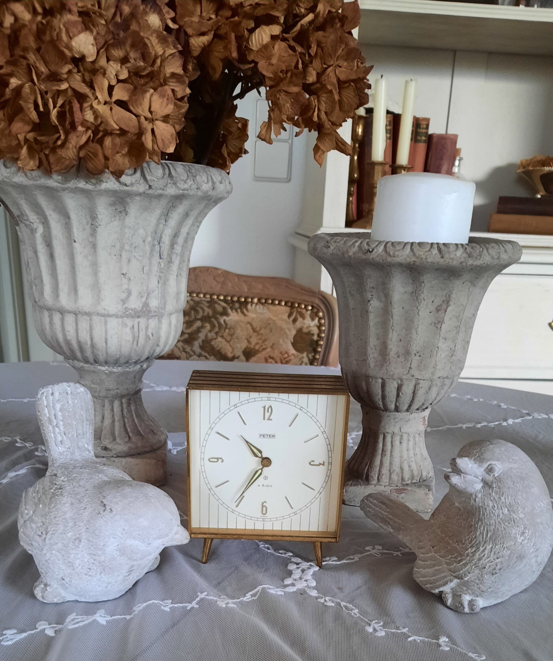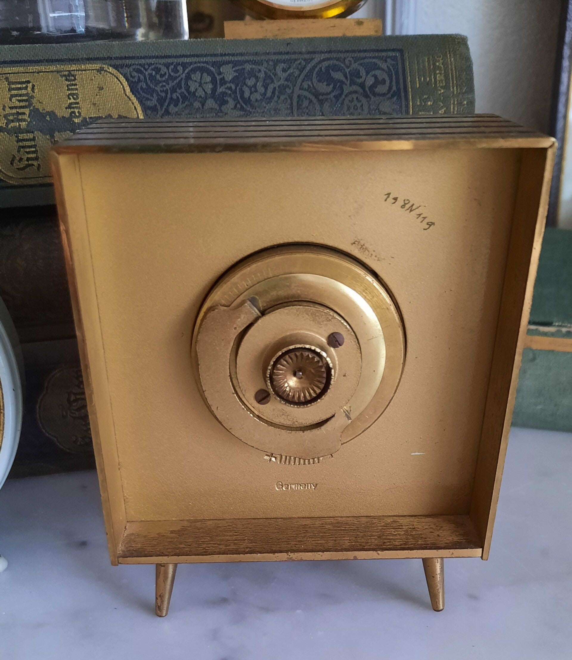 A vintage Peter 4 Rubis brass clock with 4 legs. Made in Germany from the 1970s-1980s.