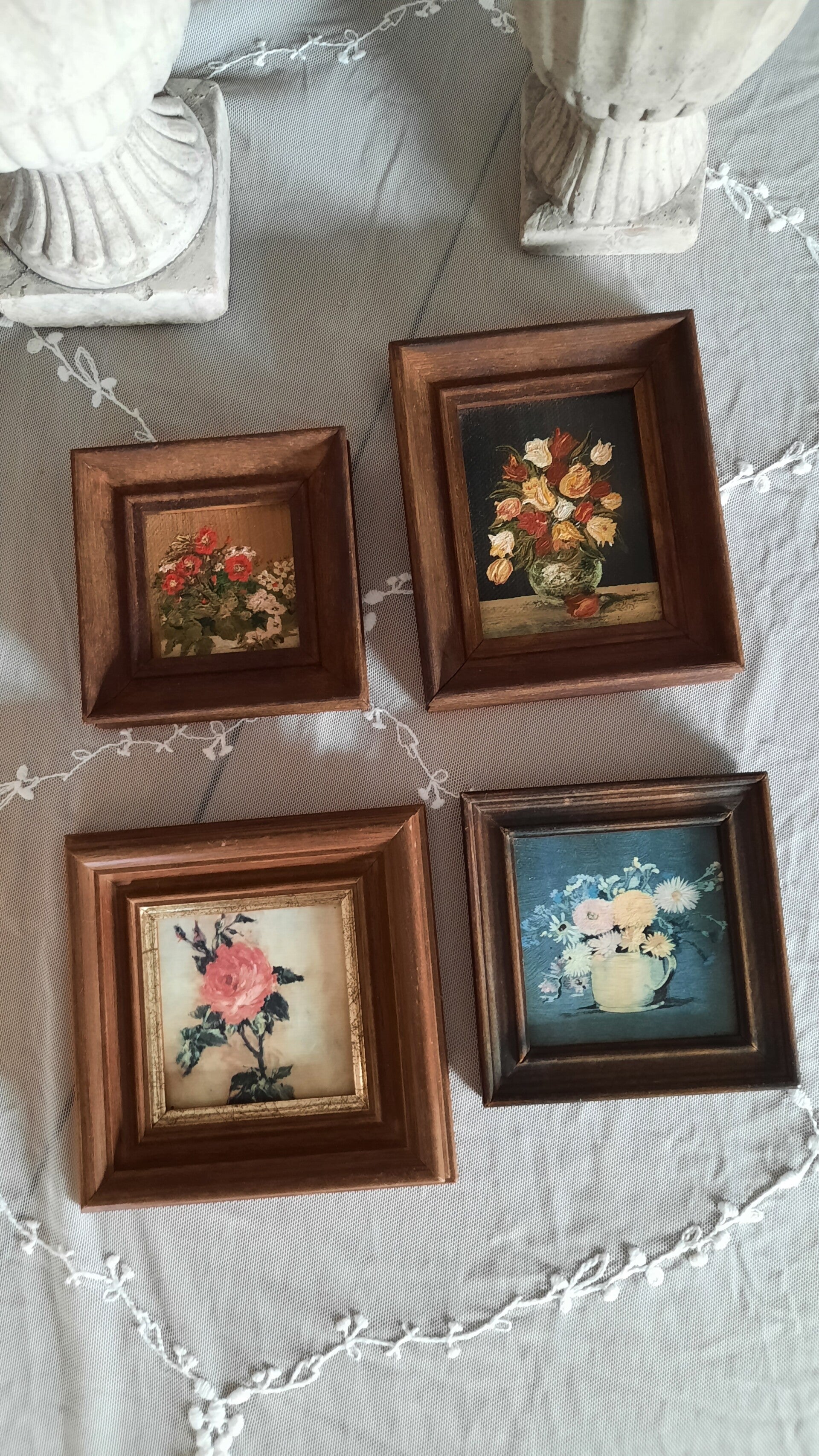 Vintage Set of 2 Miniature Framed Floral Oil Paintings