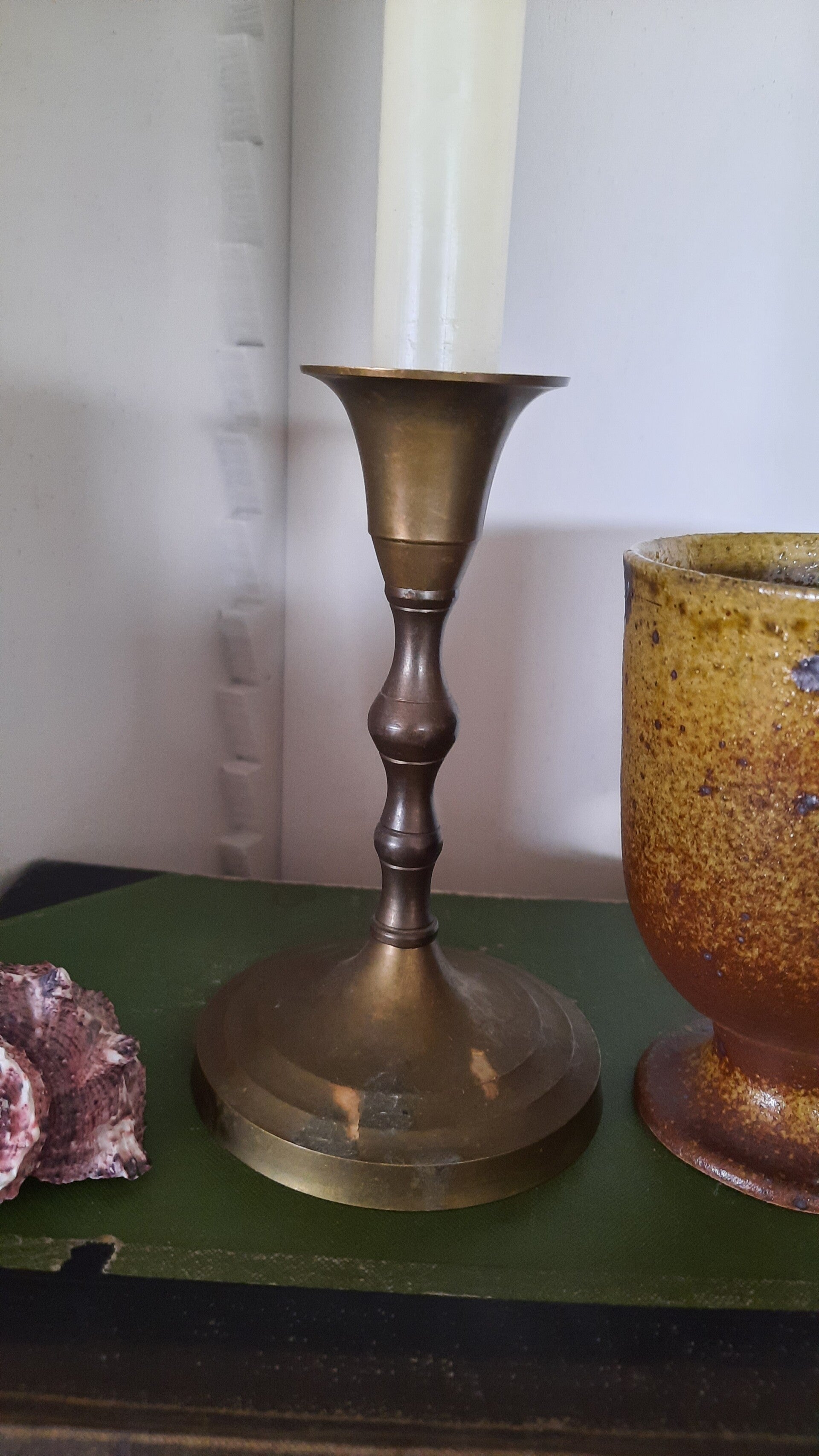 In vintage condition with age-related wear, patina, and tarnish, which is typical of vintage brass and only adds to the charm.
