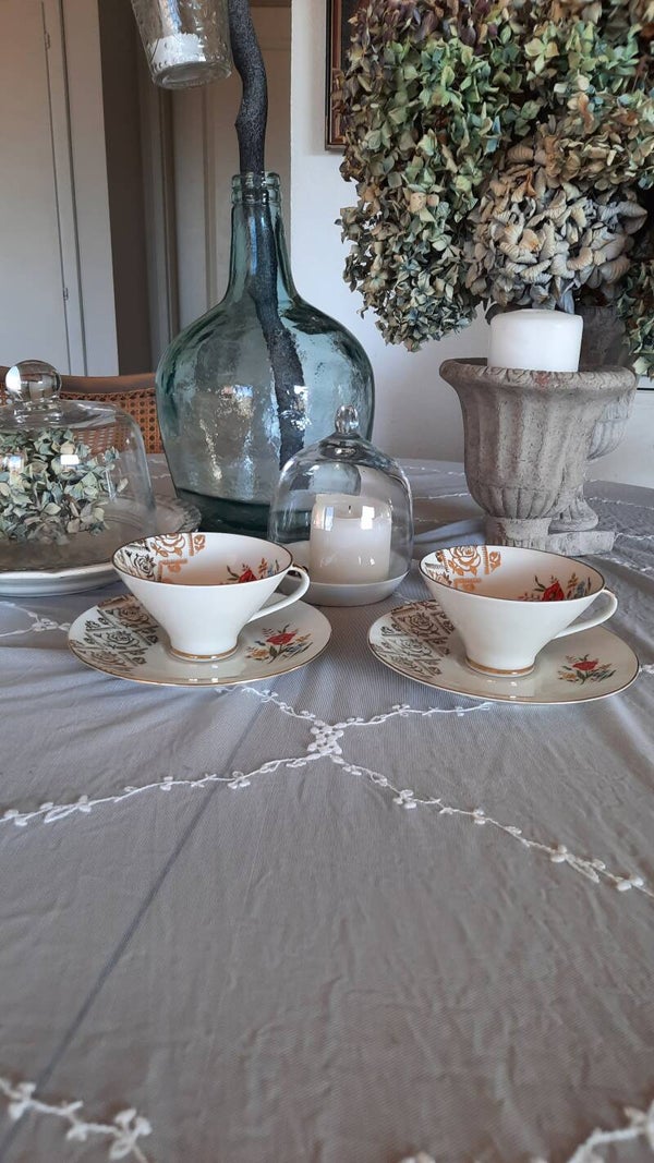 Vintage Porcelain Pair of Tea Cups and Saucers