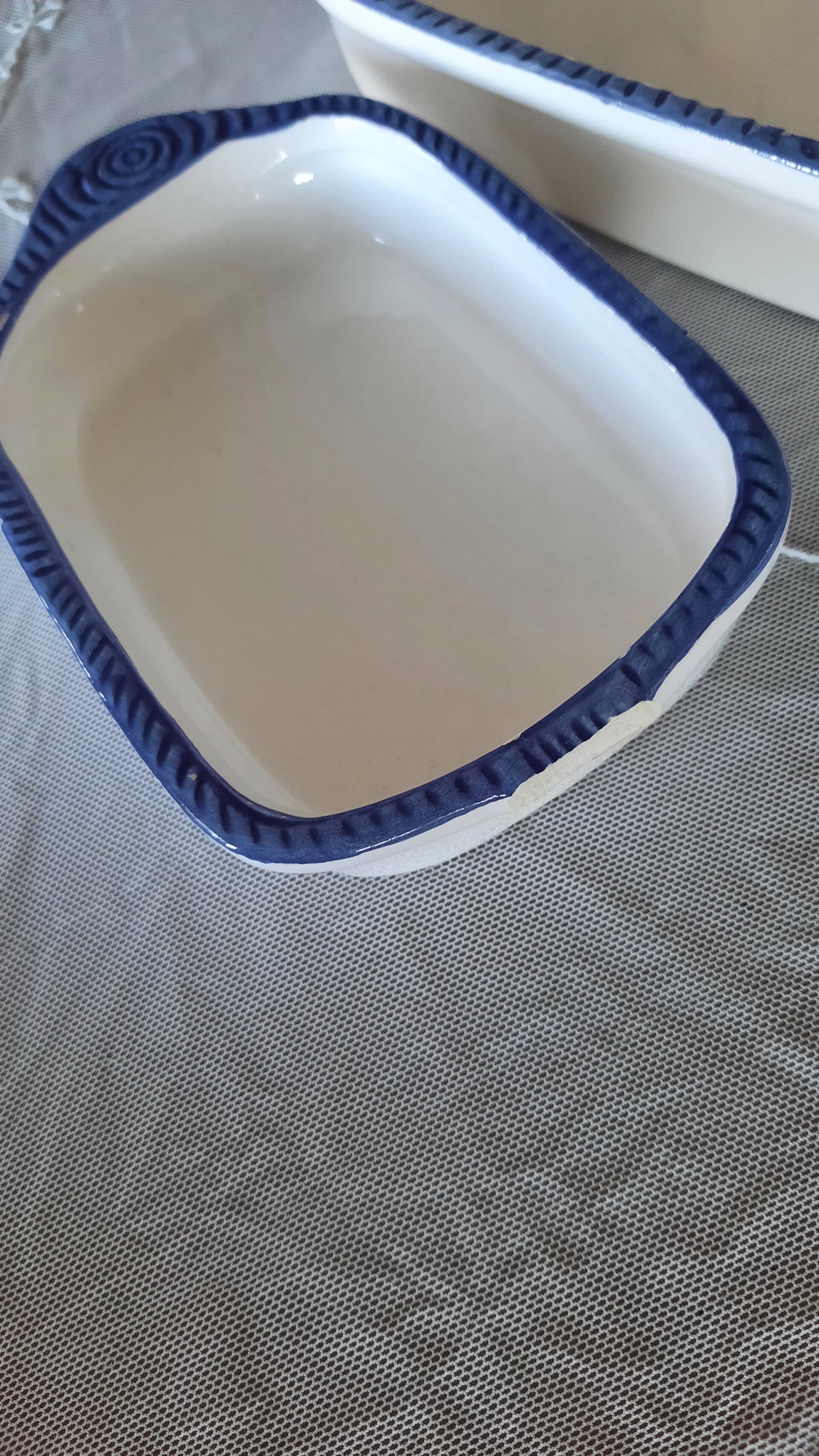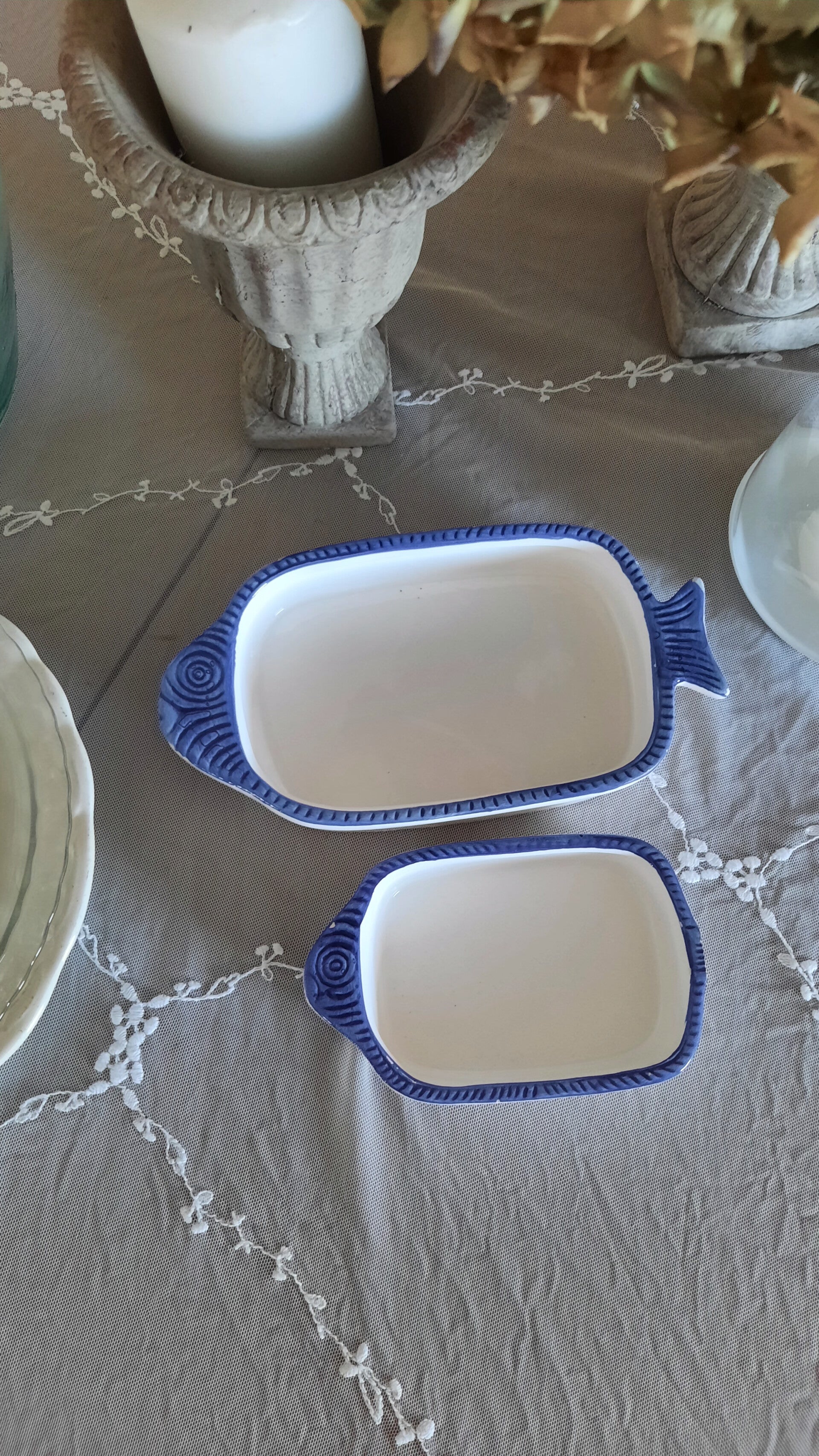 A lovely set of 2 ceramic fish bowls in white and blue color.
