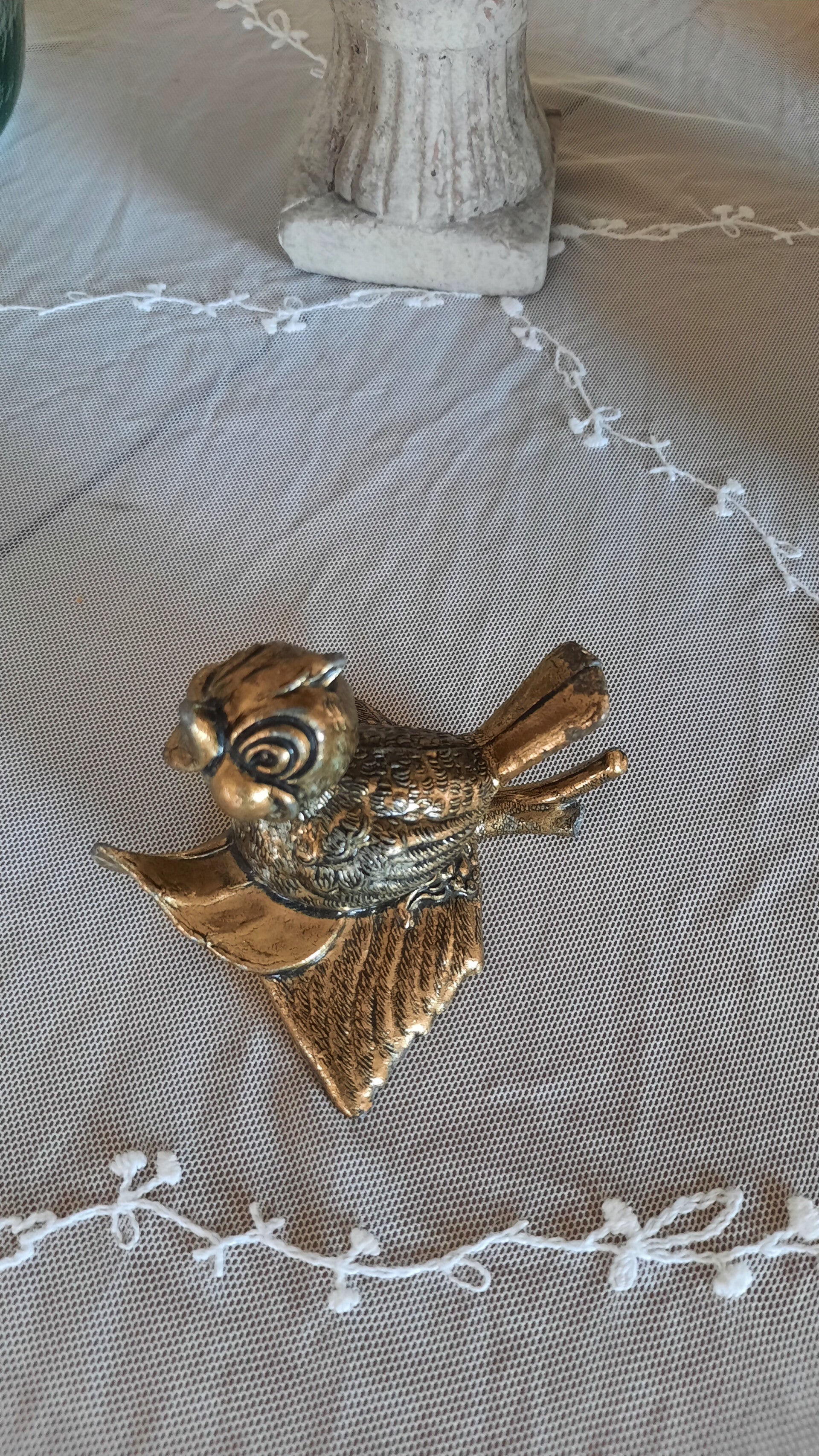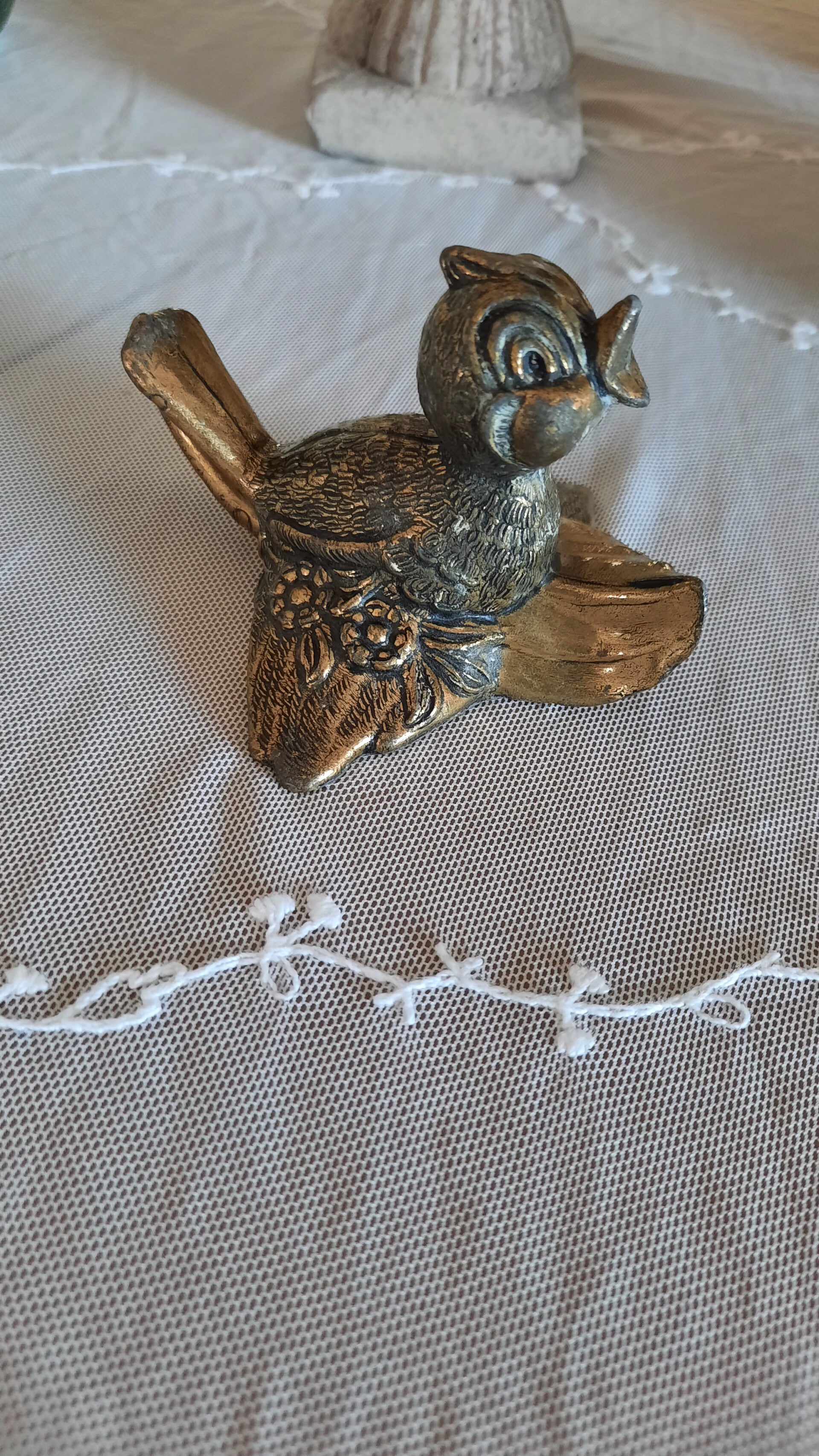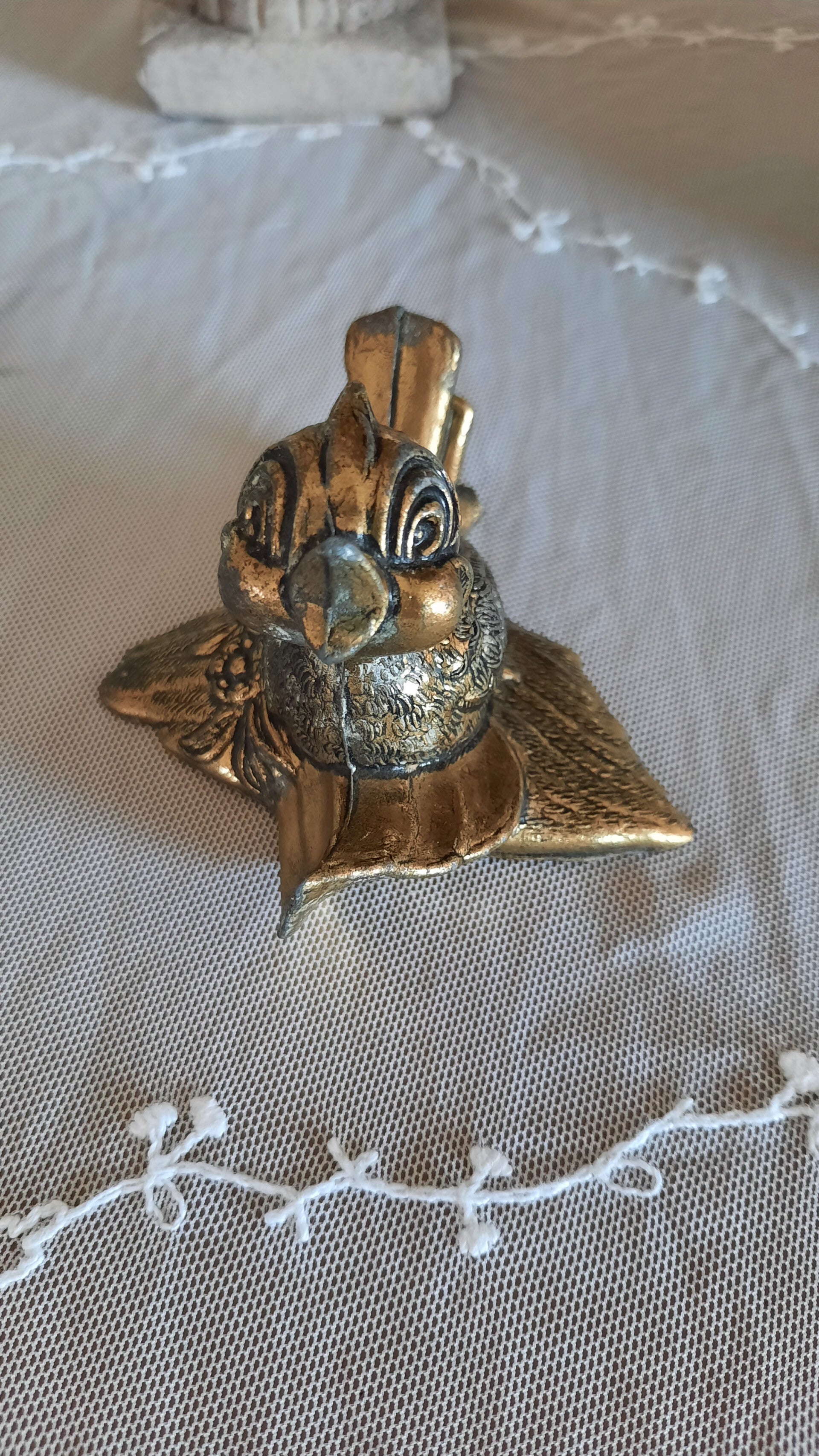 A lovely brass bird figurine made in Italy. You can use it as decor or as a candle snuffer. Marked on the bottom: Mod.Dep Made in Italy.